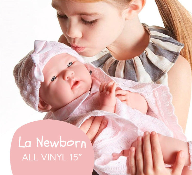 JC Toys La Newborn ROYAL Collection 15" All-Vinyl Anatomically Correct Real Girl Baby Doll Pink Gift Set Ages 2+
