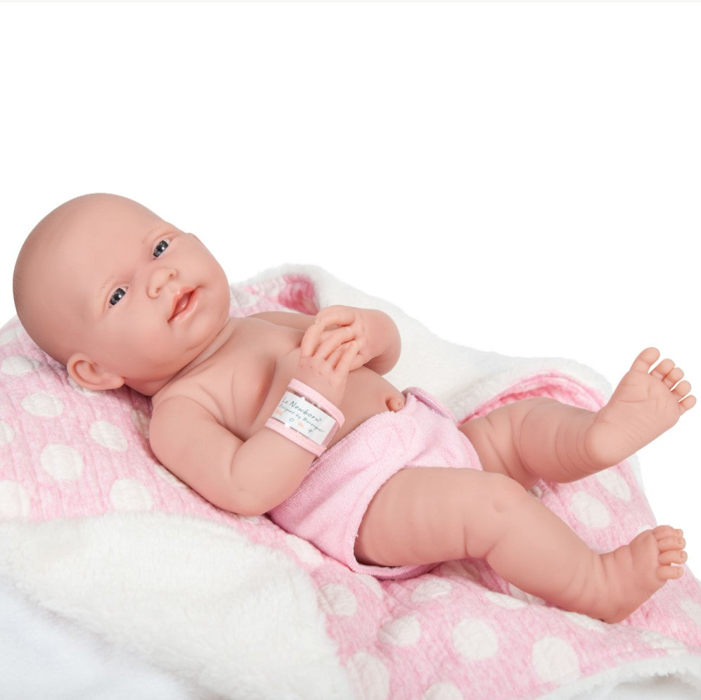 JC Toys is one of the leading online sources for lifelike baby dolls and accessories, and you’re going to love the incredible detail and quality that we offer for this adorable newborn baby doll set! All La Newborn dolls are designed and manufactured in Spain, providing the highest quality design and craftsmanship. Add smiles to a young child's face today by adding this La Newborn Doll to your cart - Thank you!